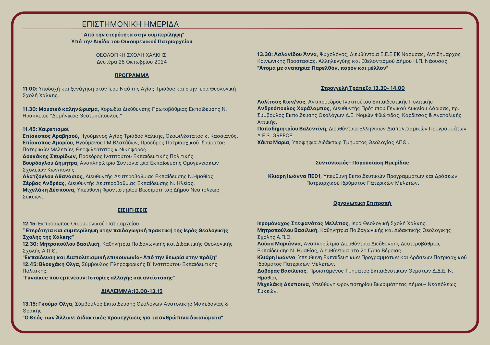 Το πρόγραμμα της επιστημονικής ημερίδας "Απο την ετερότητα στην συμπερίληψη" σε μορφή jpg.
