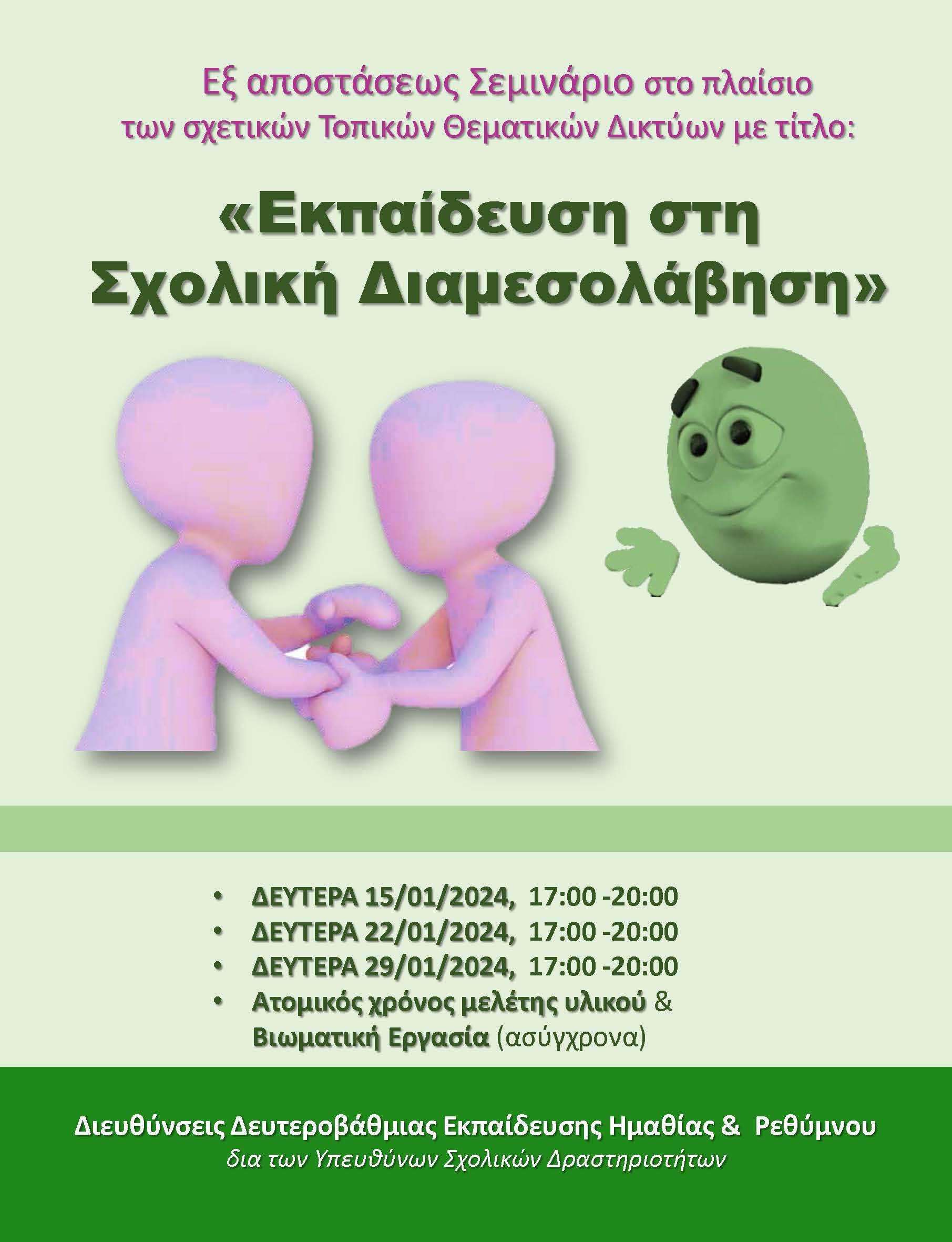 Δελτίο Τύπου-Μικτό εξ αποστάσεως Σεμινάριο με τίτλο:Εκπαίδευση στη Σχολική Διαμεσολάβηση