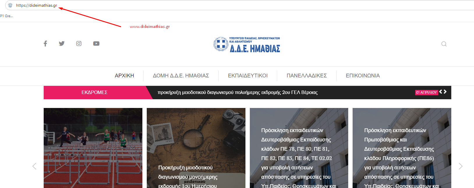 - Επισκεφθείτε το δικτυακό τόπο της Δ.Δ.Ε. Ημαθίας στην ηλεκτρονική διεύθυνση www.dideimathias.gr